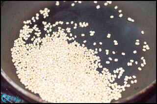 - Finally, add rice to the pan and fry the rice till they are slight brown color. Add the fried rice also to the mixer.