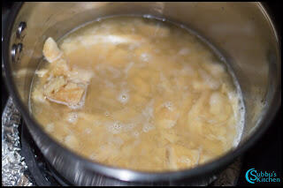 - In a small sauce pan add grated jaggery and add water to soak the jaggery and keep it in flame and allow the jaggery to dissolve completely. When the jaggery is dissolved, switch off the flame and set the jaggery syrup aside. In a pan, add half of the ghee and add the kummayam podi and fry the podi in ghee in low flame for 3-4 minutes. You would get a nice aroma