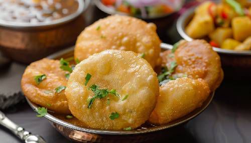 Enjoy these piping hot dhuska with mint and coriander chutney.