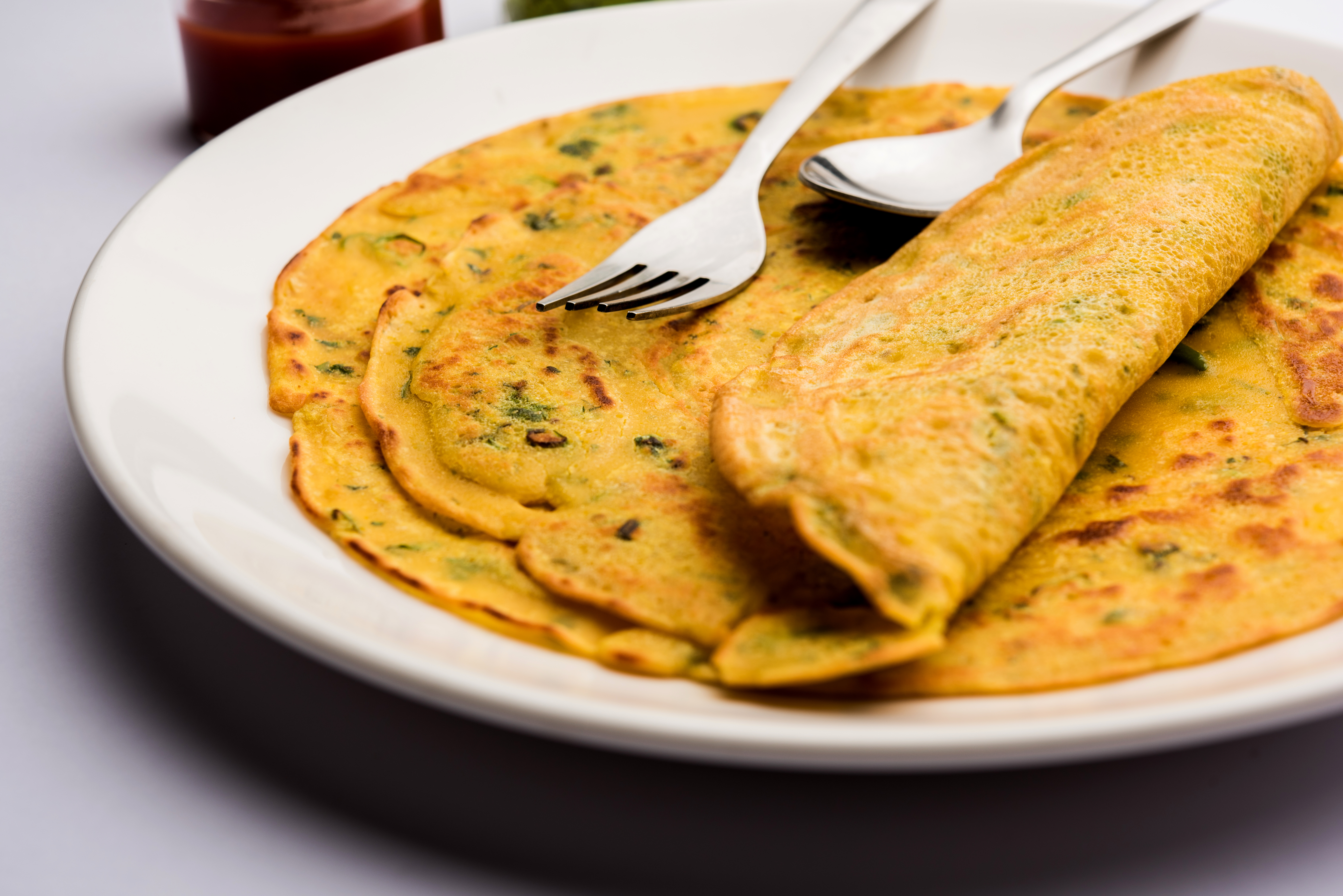 If using curd, mix it in now for a softer chilla texture Grease a non-stick tawa or iron pan with a few drops of oil or ghee.Once hot, pour a ladleful of batter and spread it in a circular motion (like a dosa). Drizzle a little oil around the edges.Cook on medium flame for 2–3 minutes per side until golden and crisp.Flip and cook the other side till lightly browned. Serve immediately with mint chutney, curd, or a light tomato-onion chutney for a wholesome breakfast.TIPS-
